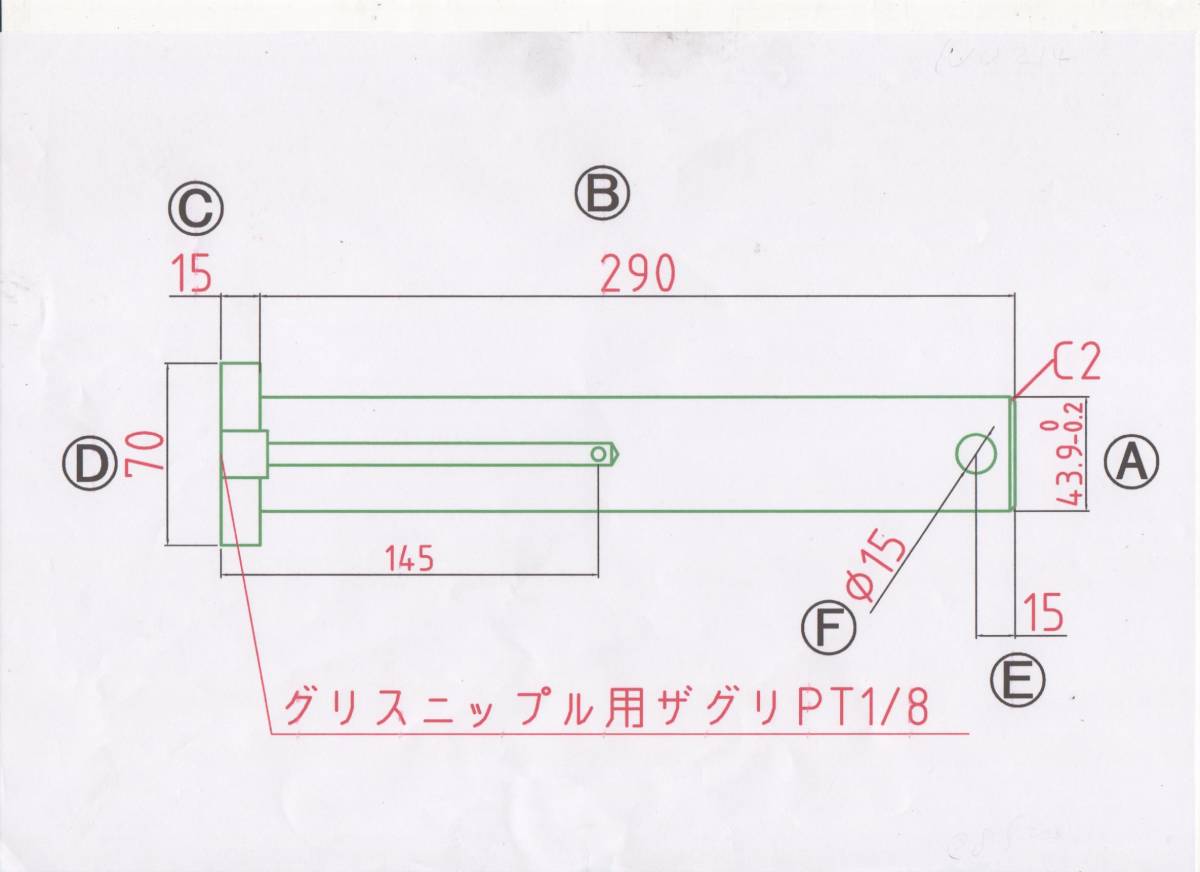 - NO 214 Φ44用 ツバ下290mm グリス穴付きバケットピン 重機 パワーショベル