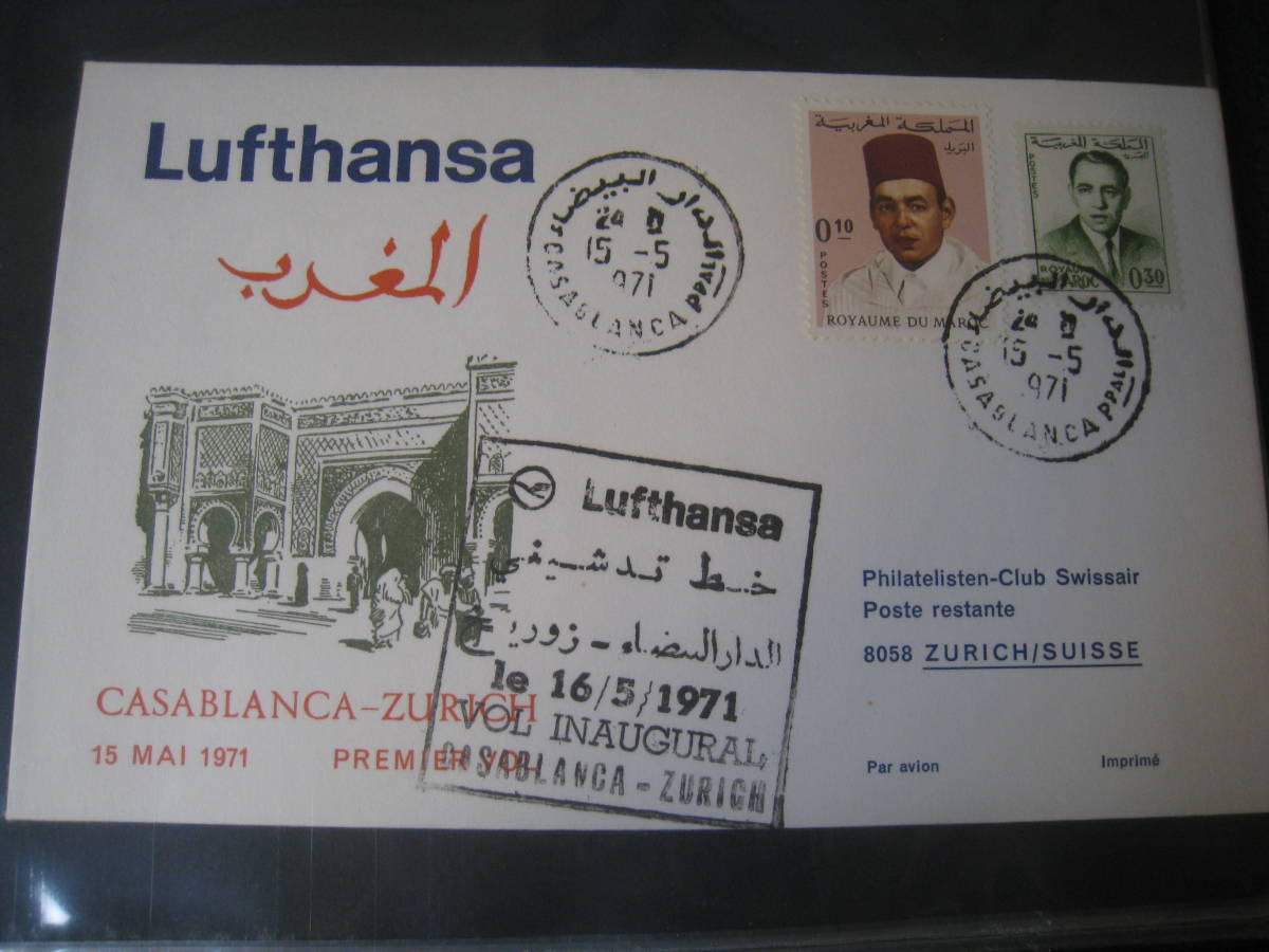 - ★F045 FDC/FFC初日カバー1971 ルフトハンザ航空 カサブランカ - チューリッヒ -