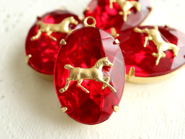 > ☆レア☆ ヴィンテージ ランニング ホース 走る 馬 動物 ルビー レッド カラー ガラス ストーン コレクション アクセサリー パーツ 1個