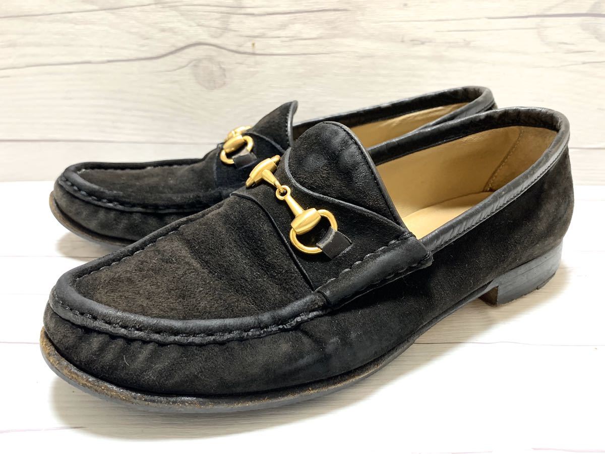 - 【即決】GUCCI グッチ イタリア製 レディース 36.5 23.5cm程度 ビットローファー ホースビット 本皮 本革 革靴 スエード 黒 ブラック