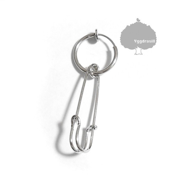 - YGG★新品 ミニ安全ピン モチーフ付き フープ イヤリング フェイクピアス シルバー 銀 BTS 1個 片耳
