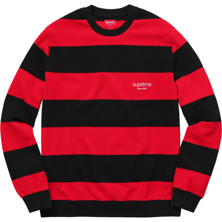 > 希少★新品本物【黒赤★M】★Striped Pique Crewneck ストライプピケ クルーネック 正規店購入 シュプリーム 限定 入手困難 Supreme 2016SS
