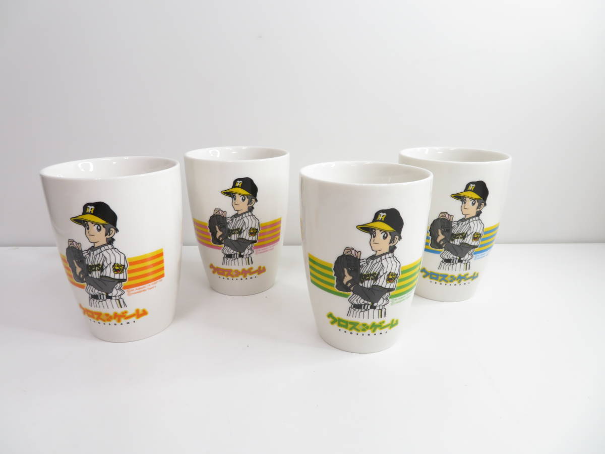 > 未使用品◆クロスゲーム あだち充 野球 タイガース コップ 4客セット 色違いセット ガラスコップ 湯呑み 管理2009 L-9