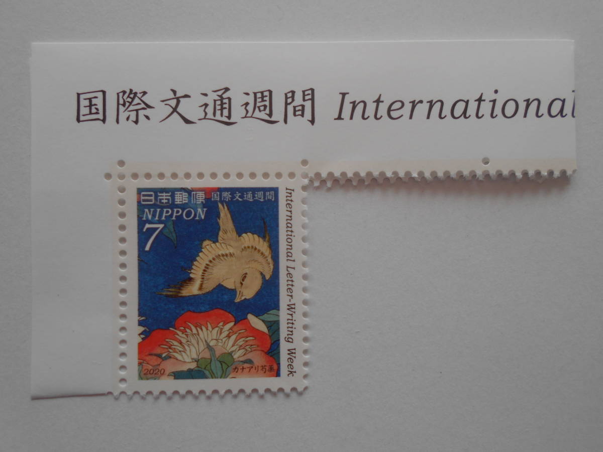 - 題字付き文通週間 2020 カナアリ芍薬 未使用7円切手