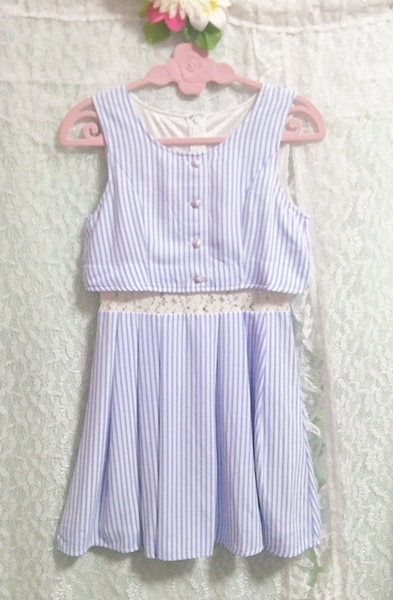 > 青白チェック柄ネグリジェノースリーブチュニックワンピース Blue white plaid skirt negligee sleeveless tunic dress