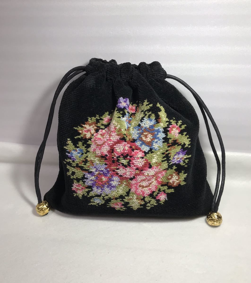 - FEILER フェイラー 巾着袋 (ポーチ)花柄デザイン 黒系色 レディースアイテム おしゃれ小物
