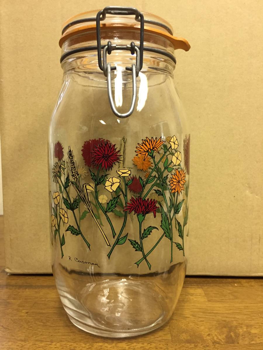 > フランス製 ビンテージ Arc Glass キャニスター 2L 花柄 アルク社 R.Carman ジャー Candy Pot