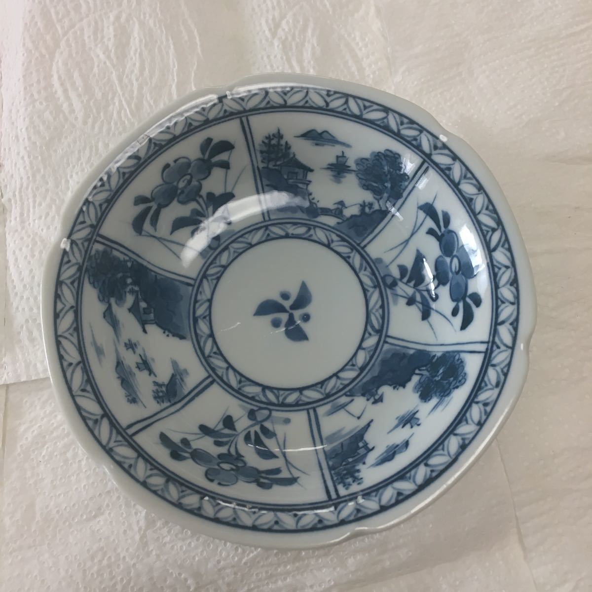 - 高峰 高峰窯 高峰焼 風車 釣り舟 釣り船 帆船 花柄 船頭 釣り人 海 湖 島 花 雲 染付