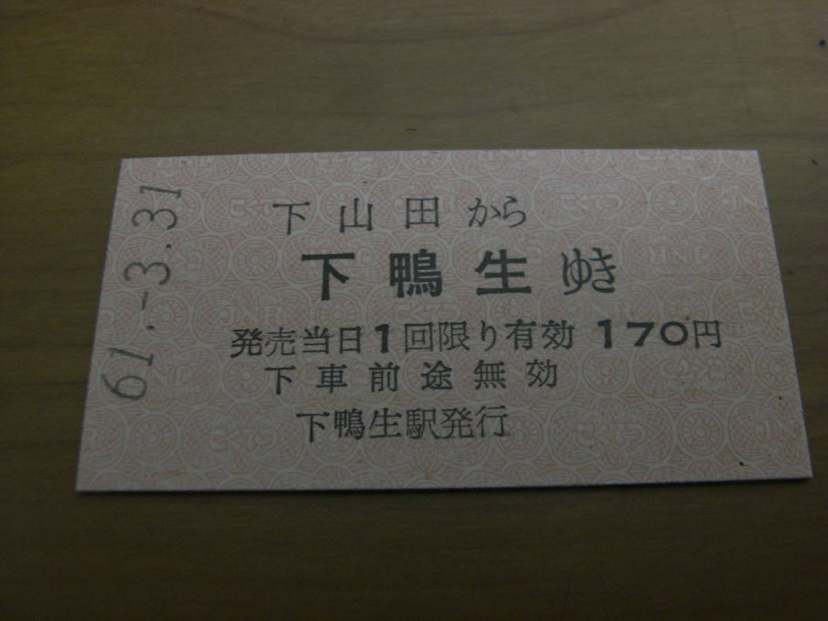- 漆生線 下山田から下鴨生ゆき 170円 昭和61年3月31日 下鴨生駅発行 ●漆生線最終日