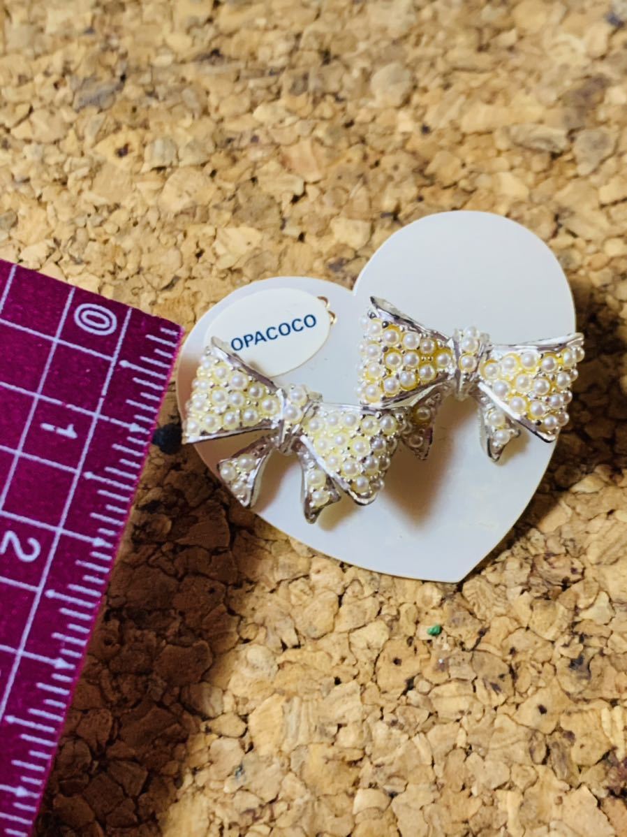 - 【H&M】小粒パールがビッシリリボンピアス♪