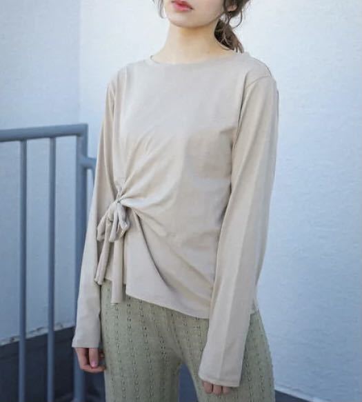 - E hyphen world gallery サイド結びロングTシャツ ベージュ