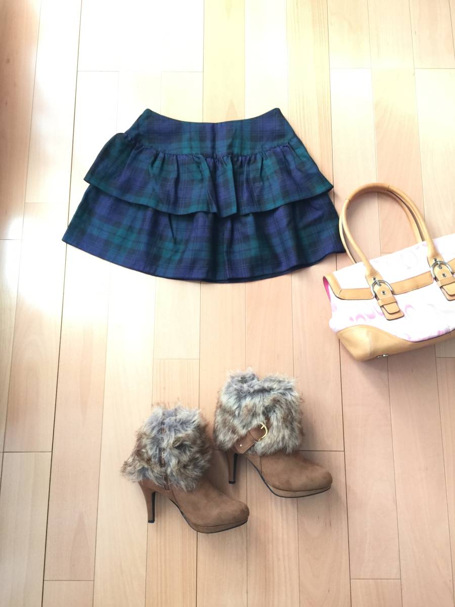 - ★O'NEIL of DUBLIN オニールオブダブリン チェック スカート 38 フリル レディース ミニ グリーン×ネイビー ティアード ラッフル