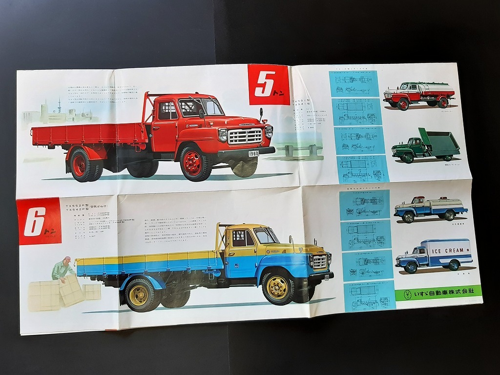 - いすゞ ボンネットトラック ダンプ タンクローリー 1960年型 超特大カタログ 昭和35年 当時品!☆ size 74.5㎝×83.5㎝ 絶版 旧車カタログ