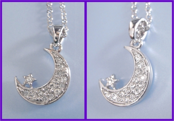 - N6347/三日月と星ネックレス ムーンスターペンダント 綺麗に輝くラインストーン 宇宙星天体好きさんへのプレゼント ギフトにも