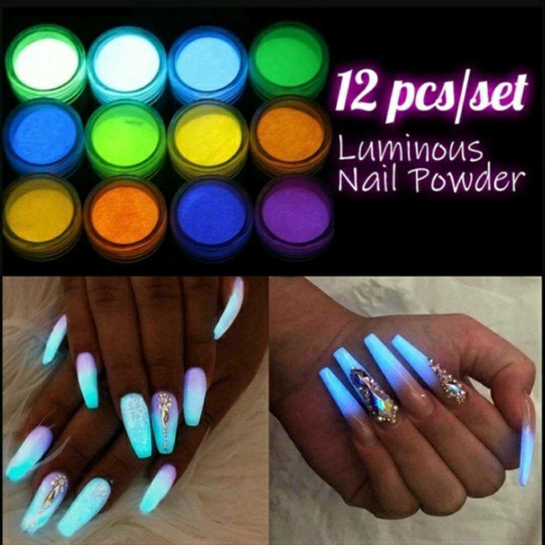 - 新品 ネイル アート 蛍光 材料 パウダー パーツ 12色セット価格 6