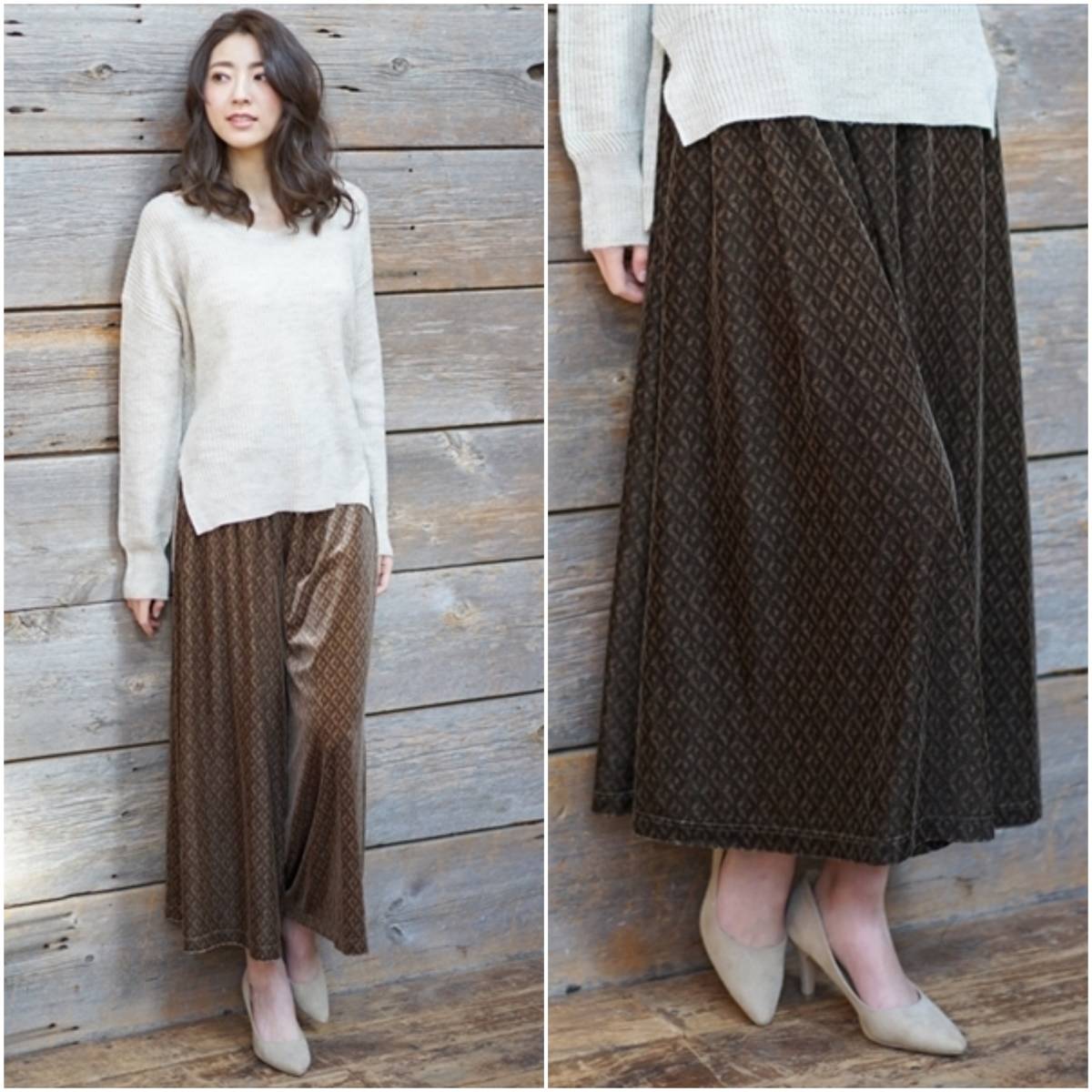 - 大人綺麗 ☆ goa ☆ TINYTRIBALプリントベロア クロップド スカンツ / 上品 / カーキ / ワイドパンツ / ガウチョ / ゴア /レディース