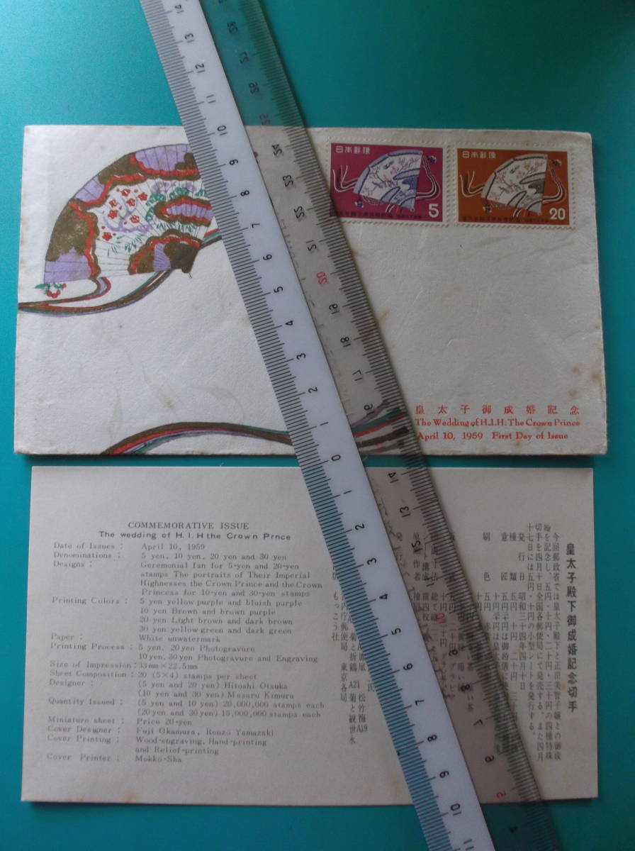 - 皇太子殿下御成婚記念 ひおうぎ 5円 20円 貼付 1959.4.10