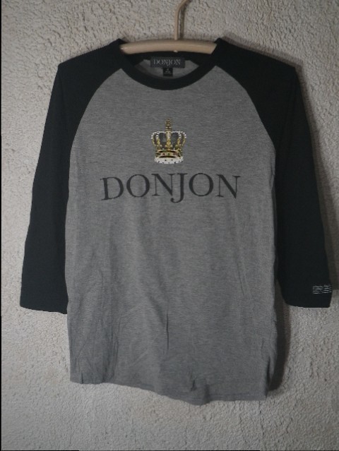 > n3380 DONJON ドンジョン アメリカ製 ラグラン 七分 tシャツ 冠 プリント ヒップホップ 送料格安 ビンテージ★Vintage