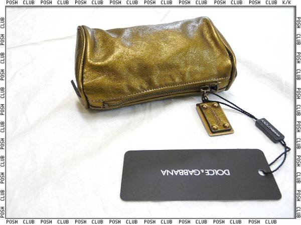 - ドルチェ&ガッバーナ【BV0017】カーフ*ポーチ*ゴールド色H8.5xW13.5xD6cm小物入れ