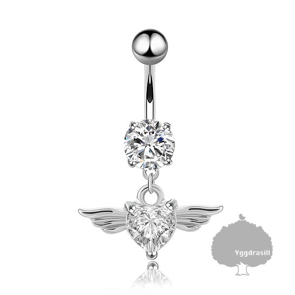 > YGG★ハート ボディピアス 羽根付き ラインストーン クリア ボディピ へそピ ステンレス レディース 銀 透明
