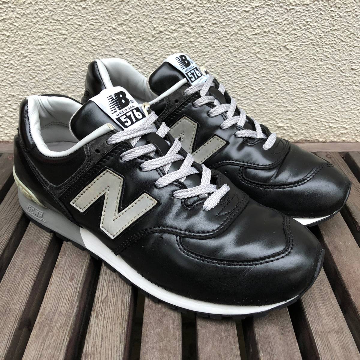 - NB公式リペア済 廃番 USA製 NEW BALANCE M576K BLACK US8D 26cm ガラスレザー 美品 中古 ビンテージ アメリカ米国製 ブラック×グレー