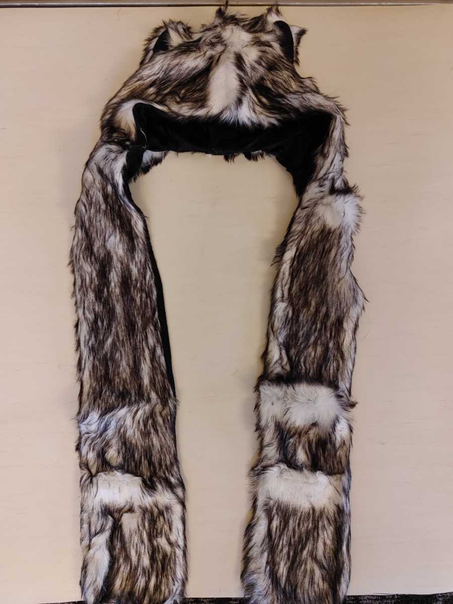 - 【新品】ホワイトウルフ フードマフラー 男女兼用※複数あり