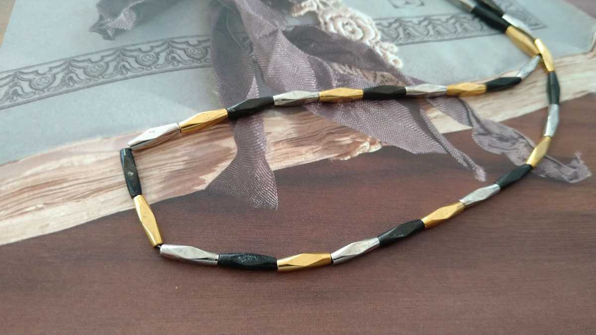 - □訳あり□シルバー&ゴールド・ブラックカラーの変形ビーズネックレス□