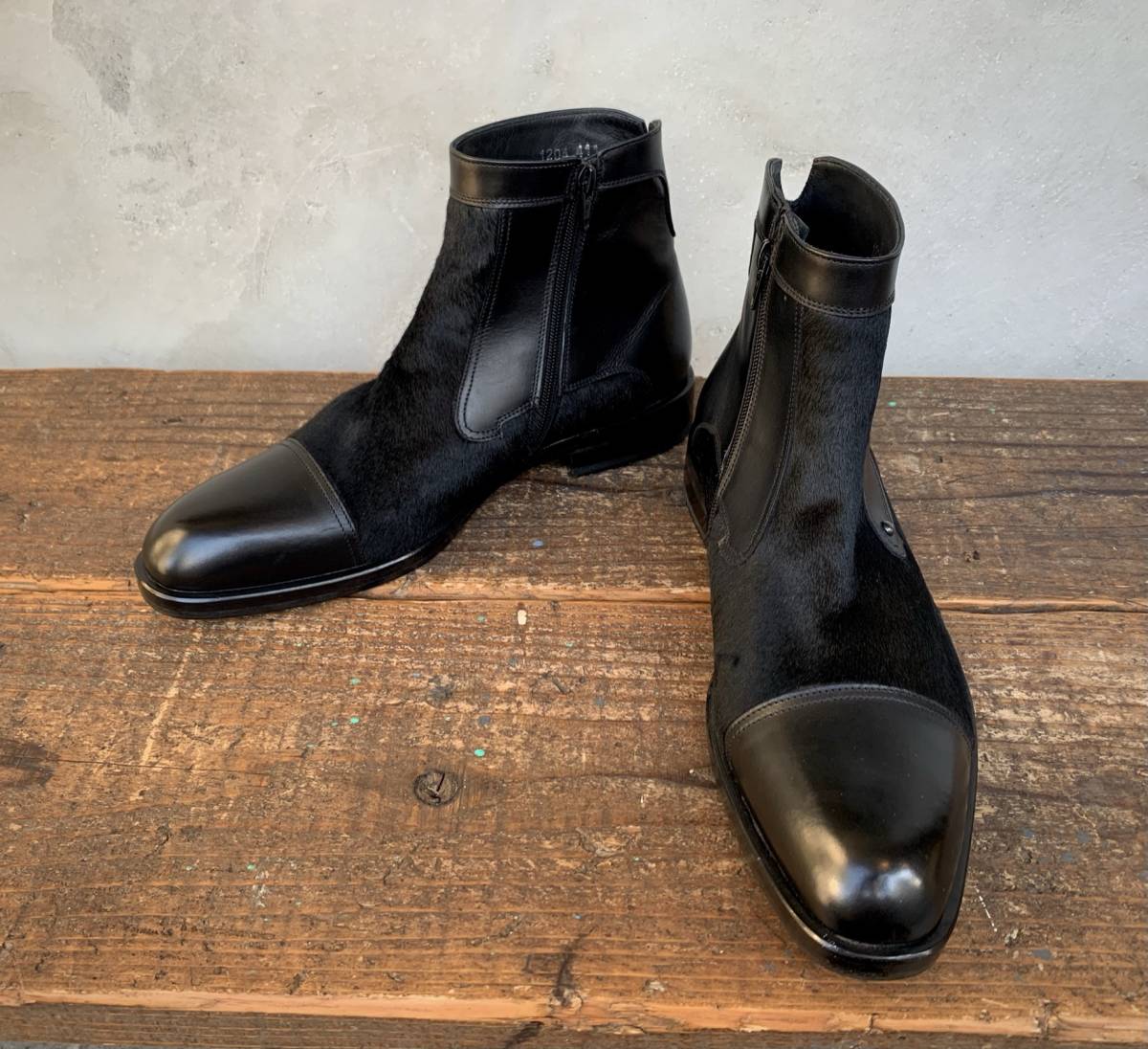 ハラコ×レザーのクールな一品です。
