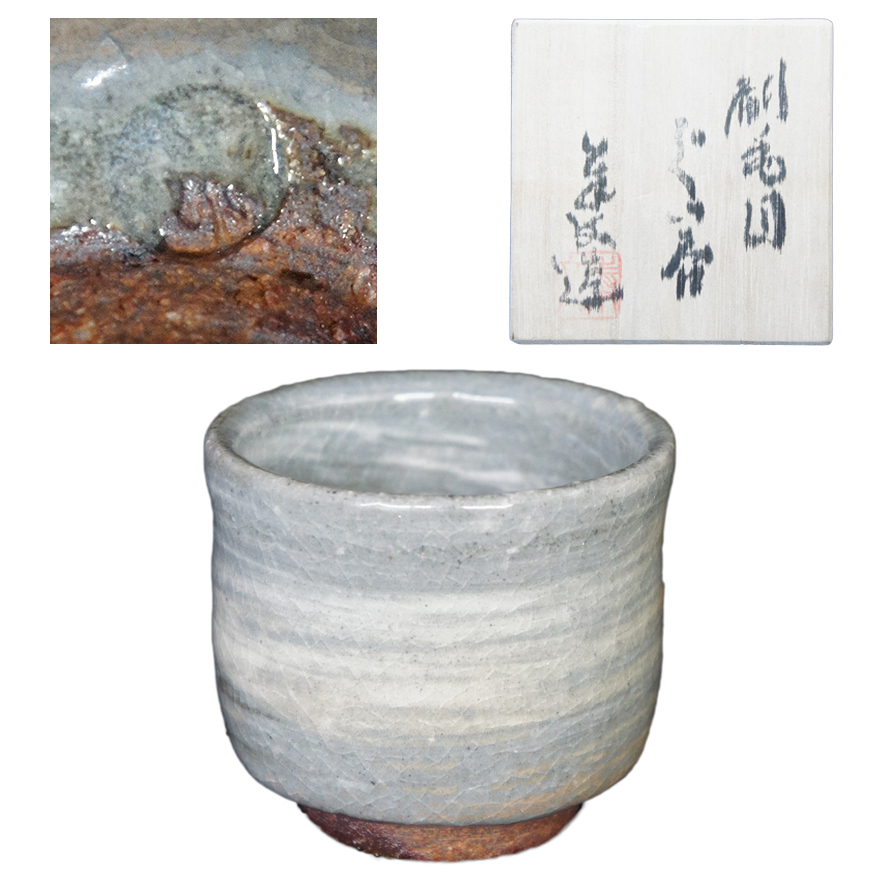 - 後迫奉文 刷毛目 ぐい呑み 萩焼 酒器 盃 共箱 y-253