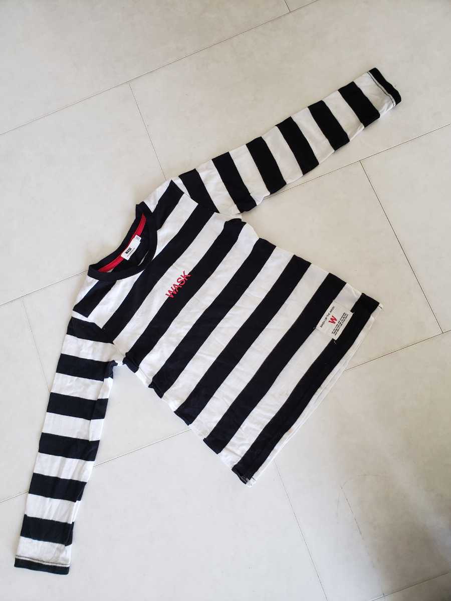 - WASKワスク★長袖Tシャツ 白黒ロゴボーダー120