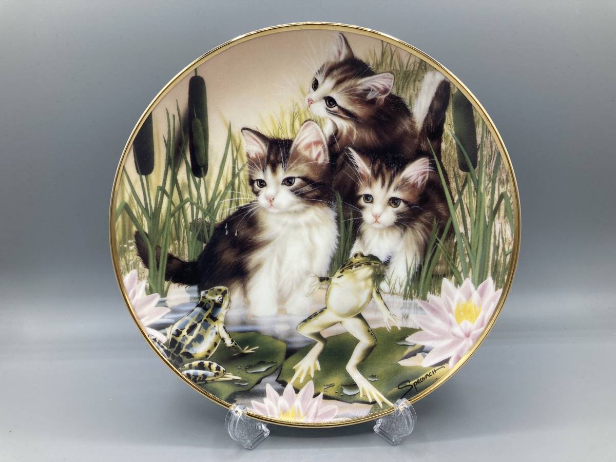 - 限定品 フランクリンミント Playing Leap Frog ネコ 猫 カエル 飾り皿 絵皿 皿 ①⑥ (793)