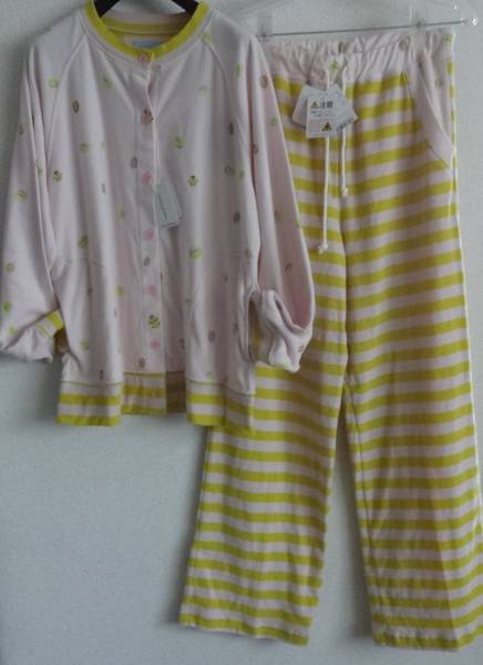 - Lサイズ ツモリチサト★ワコール新品パジャマ サイズL 長袖 前開き☆コーヒー豆ドット YE ボーダー パイル