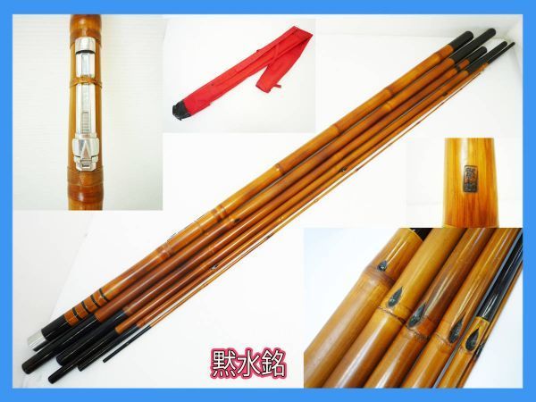 - 骨董品 黙水銘 銘竿 在銘 銘有 刻印 和竿 竹竿 6本継 艶々絶品 美竿 渓流 袋 仕舞124cm レア コレクター マニア 超稀少作品 お買得 必見⑧
