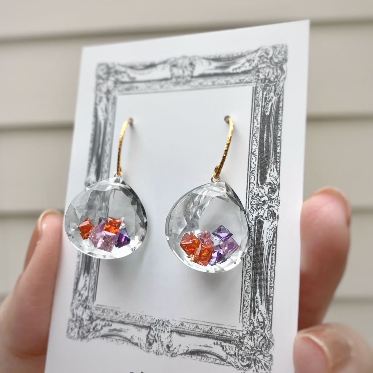 - [SALE]マルチカラージルコン×クリスタルのピアス 天然石 k14gf