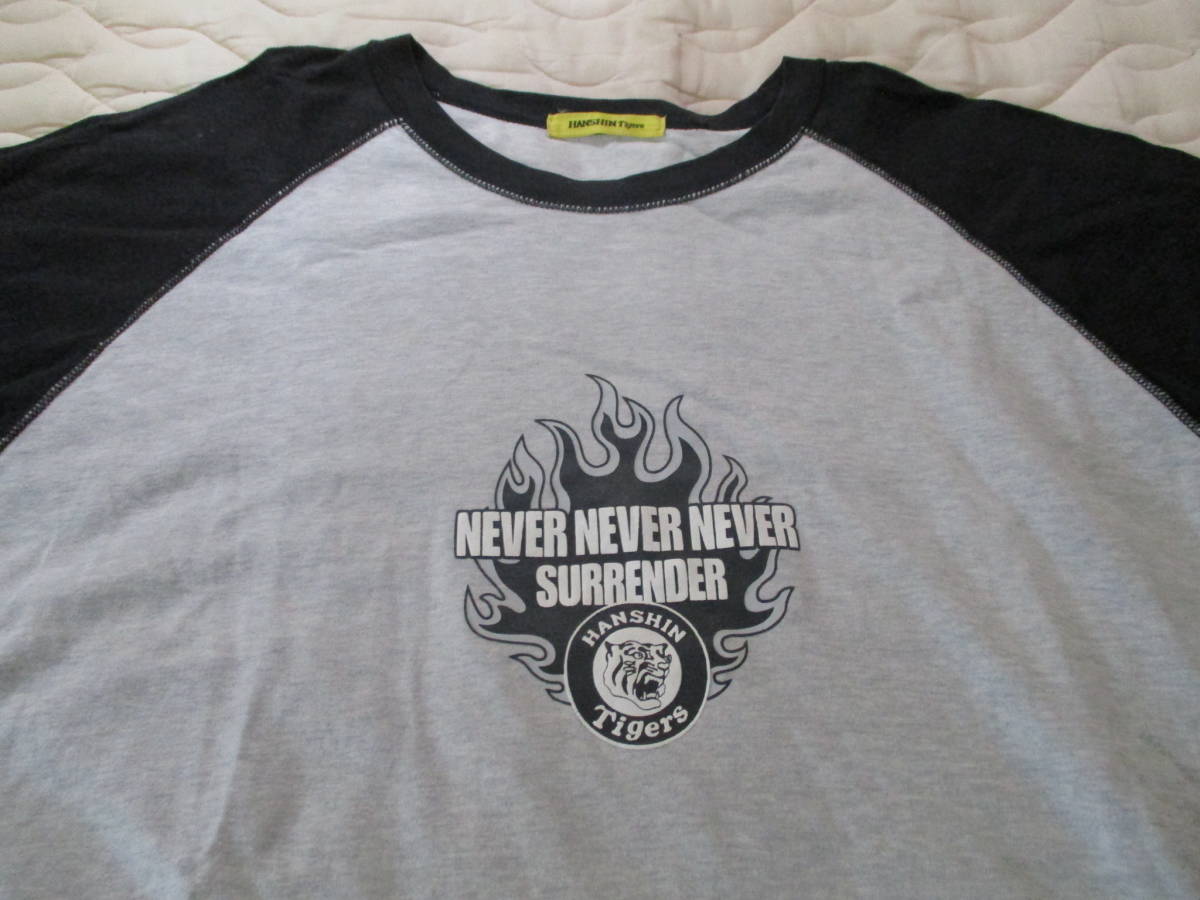 - 【日本製】★阪神タイガース★ 応援グッズ Tシャツ ベースボールT グレイ×ブラック