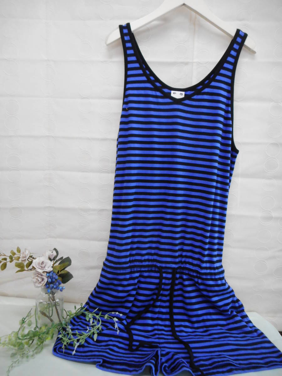 - x-girl オールインワン 青×黒ストライプ ショートパンツ キュロット レディース 在庫品