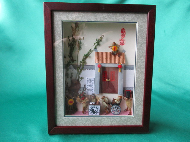 - 蝉 セミ せみ 抜け殻 アート 額装 ジオラマ 韓国 勾玉 銘あり