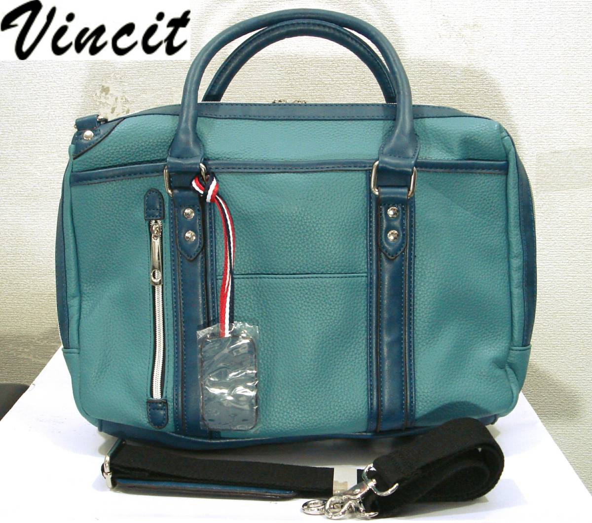 - 送料無料 訳あり新品 Vincitビ ジネスバッグ 水色×青 メンズ レディース 書類かばん ブリーフケース ショルダーバッグ ヴィンシット