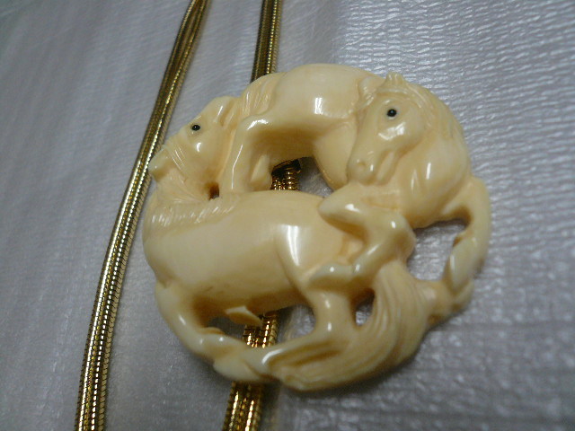 - ☆ループタイ 馬細密円(4.5㎝) 裏側に名彫り有り ゴールド鎖ネックレス式 ヴィンテージ 美品