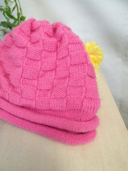 - ◆ピンクのブロック編みが可愛いニット帽◆幼稚園サイズ◆