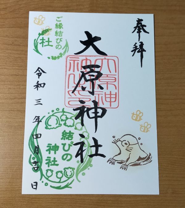 - ◆大原神社(千葉・習志野・実籾)◆御朱印「もぐら」 令和3年(2021年)4月 4月限定