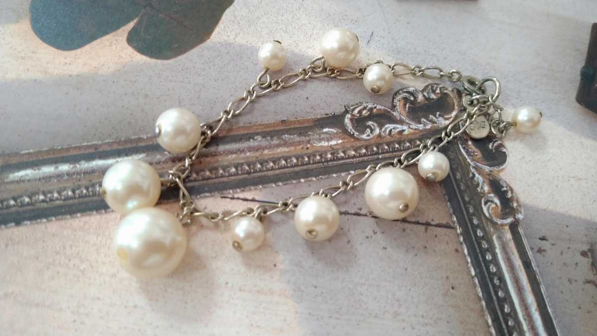 - □ete□パールビーズ&シルバーカラーチェーン・ブレスレット□