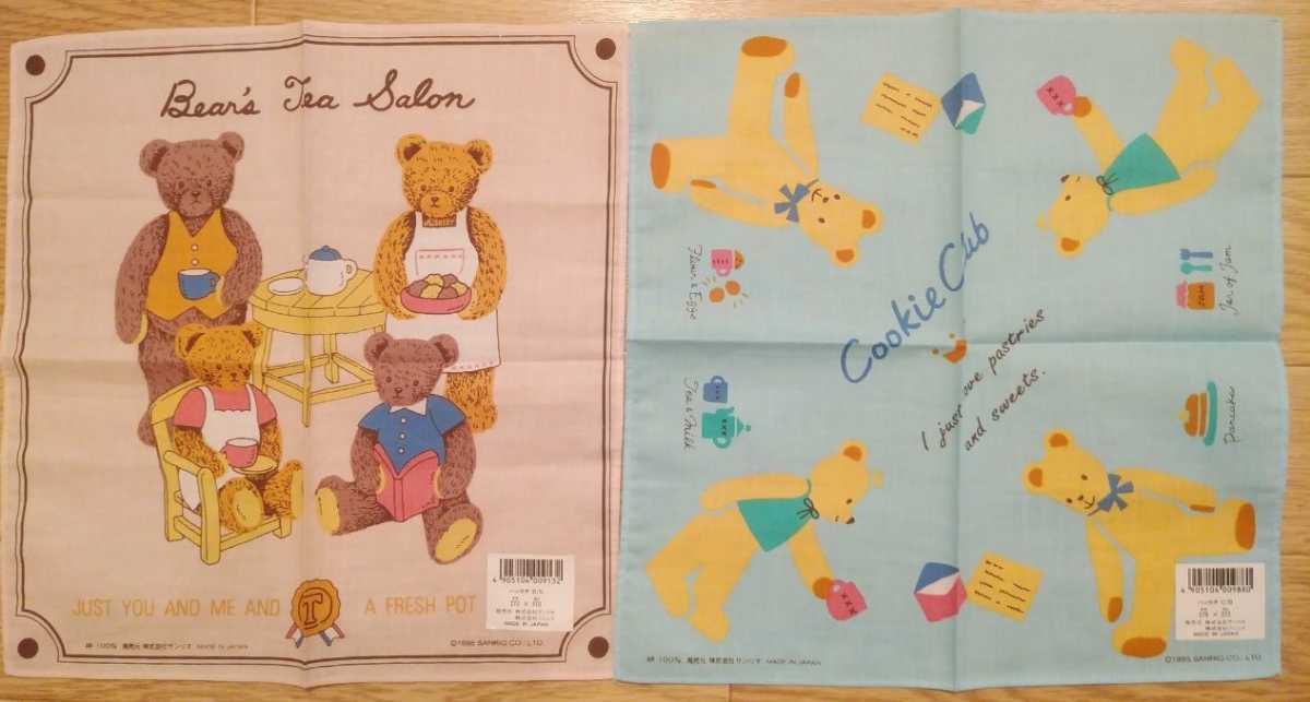 - 即決☆未使用☆可愛い♪2枚で!サンリオ クマさん ハンカチ bear's tea salon & cookie club 90年代 sanrio ファンシー雑貨 定形外140円☆