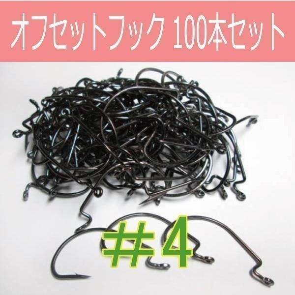 > 【 送料無料 】オフセットフック Offset hook #4 100本セット ワームフック ワーム針 サイズ9種類(#6~5/0)△