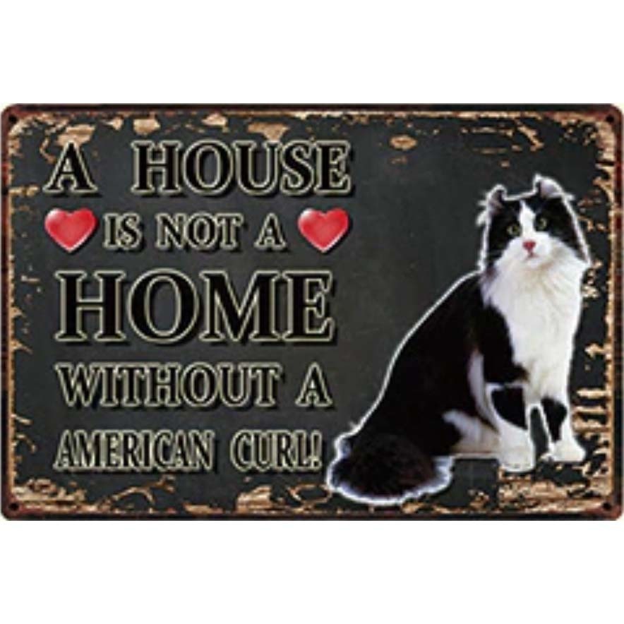 > A3385 メタル サイン ブリキ 看板 金属 プレート アート パネル 店 注意 危険 動物 ペット 猫 HOME アメリカンカール 3237