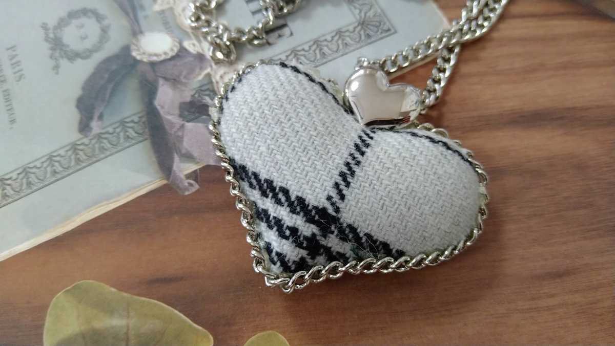 - □ファブリック×グレーハート×シルバーカラーチェーン ネックレス□
