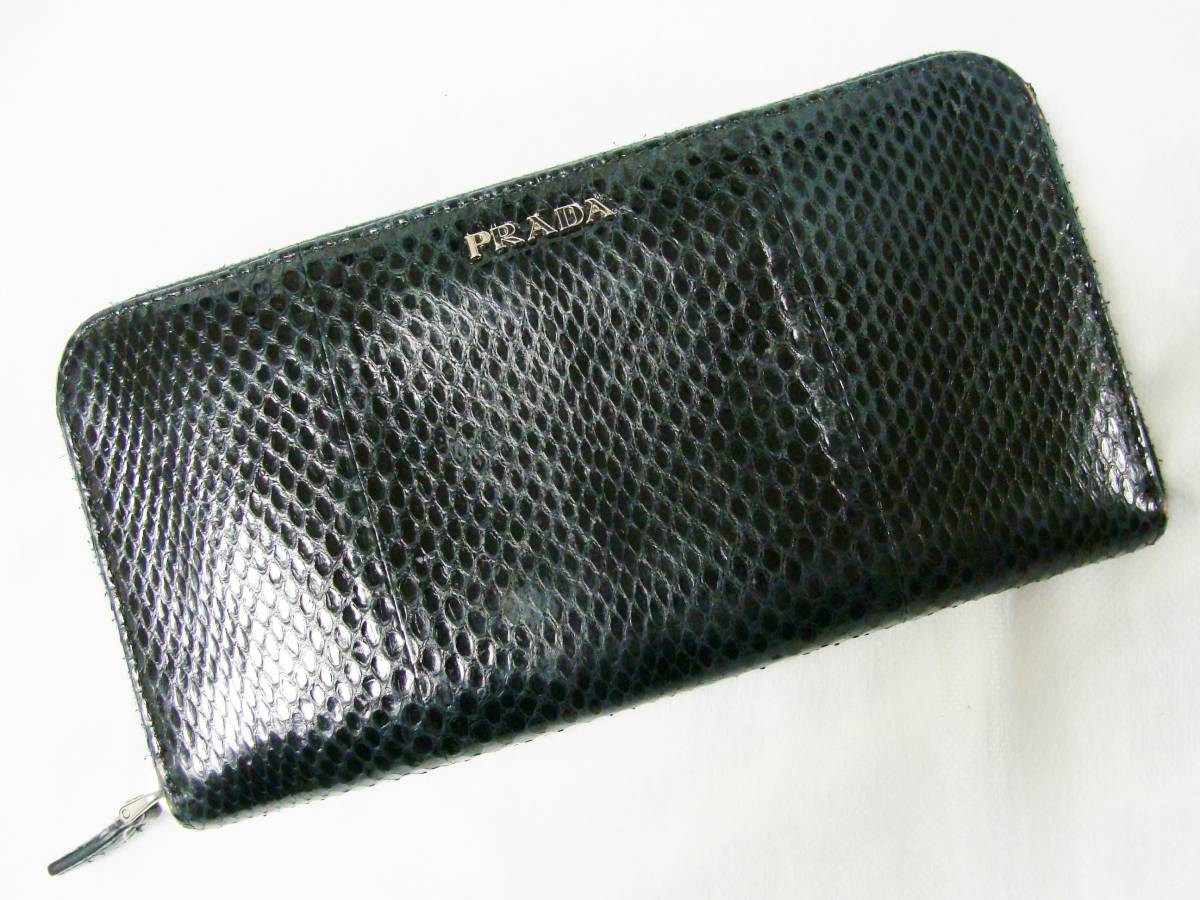 - PRADA プラダ ◇ パイソン スネーク レザー 蛇 皮 革 ラウンド ジップ ウォレット 長 財布