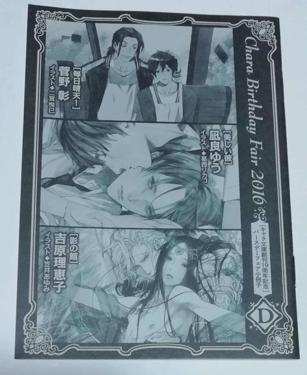 > 2016 Chara キャラバースデーフェア 小冊子 D 凪良ゆう 美しい彼 菅野彰 毎日晴天! 吉原理恵子 影の館
