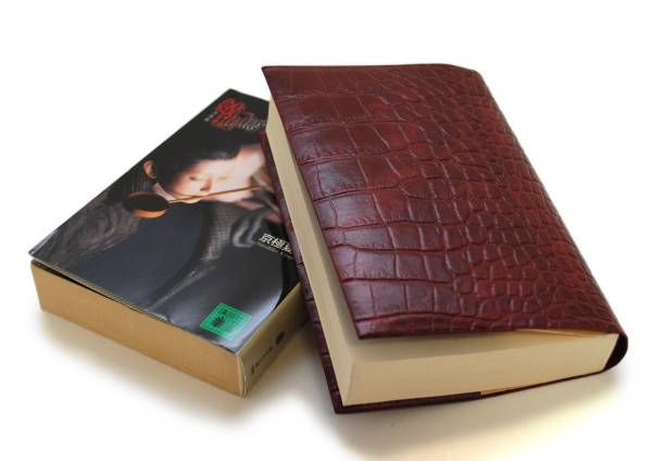 - 送料込み★お手入れいらずのリサイクルレザーで作ったブックカバー★厚めの文庫版 650ページ程度対応★クロコ型押ボルドー