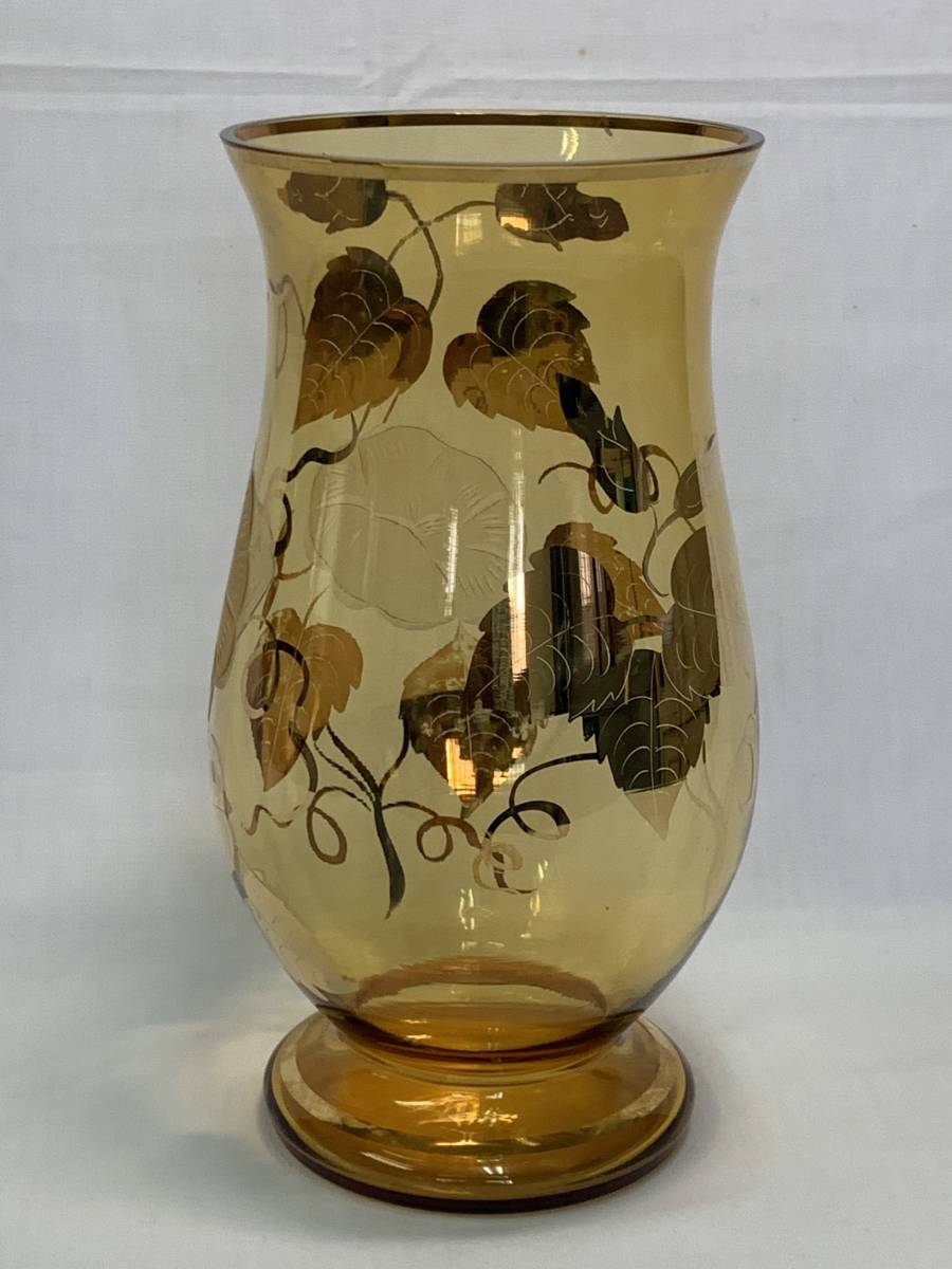- ◆◇ アンバー ボヘミア風 金彩フラワーベース 花器 (0725) ◇◆